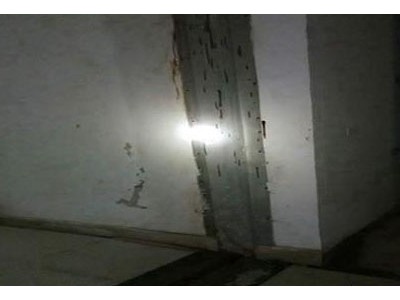 杭州市民中心 广场伸缩缝铁皮处往下滴水