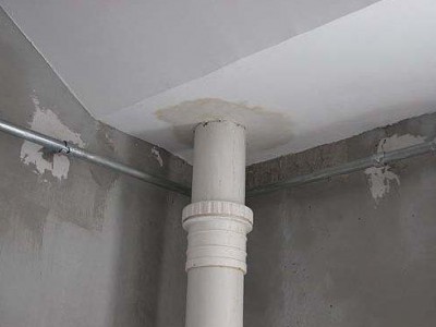 汉口航空路斜屋顶水沟里的下水管漏水