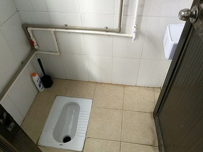 余杭区欢西路国珍健康生活馆 厕所蹲便器往楼下漏水