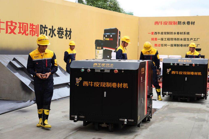 据悉,现制防水是西牛皮联手清华大学、德国科德宝高性能材料集团禄博纳公司在接连突破极配橡胶、“德国筋”以及现制卷材机三项核心技术后取得的最新科技成果,是针对于混凝土建筑全领域、全部位的现场定制防水层。防水卷材的制作与卷材防水层的铺贴同步完成,实现全机械化防水层生产新模式。
