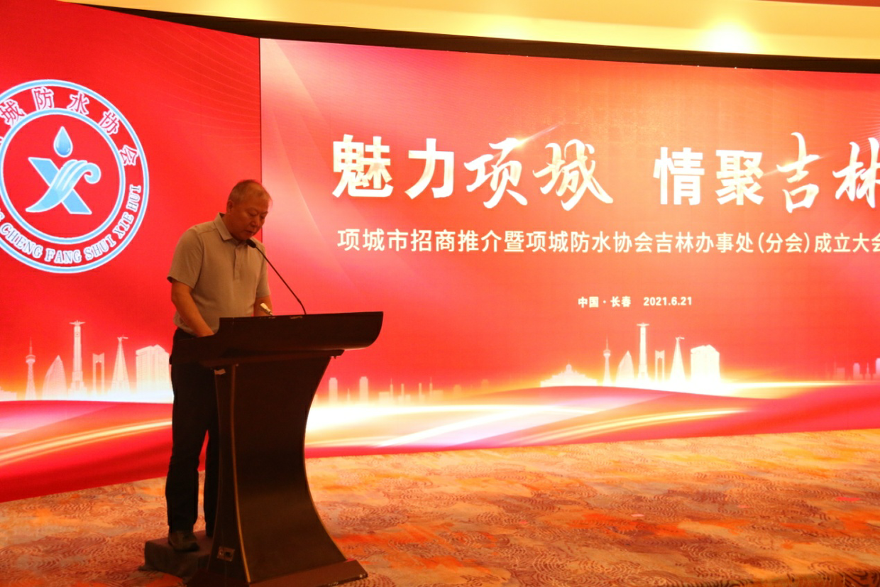 日前,河南项城市招商推介暨项城防水协会吉林办事处(分会)成立大会在长春举行。项城市政协主席王玉玲,市政协副主席、市防水协会会长、党委书记王养岭,市工商联党组书记、副处级干部谢学知,市住建局四级调研员,项城防水协会秘书长王清远,范集镇党委书记侯鑫东,孙店镇党委书记李剑楠等出席会议。中国建筑业协会建筑防水分会常务副会长兼秘书长张可文,吉林省原水利厅副厅长李国印,吉林省原政协常委段奇玉,吉林省建筑防水协会会长宫安等也应邀出席会议。