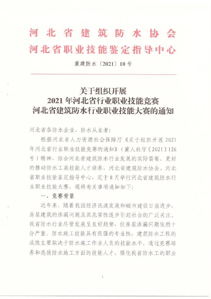 为全面提高我省建筑防水施工人员的整体素质和技能水平,推进职业技能教育,促进高技能人才的培养、选拔和激励。我会决定组织2021年建材行业职业技能竞赛—『远大洪雨杯』建筑防水行业(防水工)职业技能大赛(华北赛区)初赛。本次大赛由中国建筑防水协会统一部署,自愿报名参加。具体内容如下: