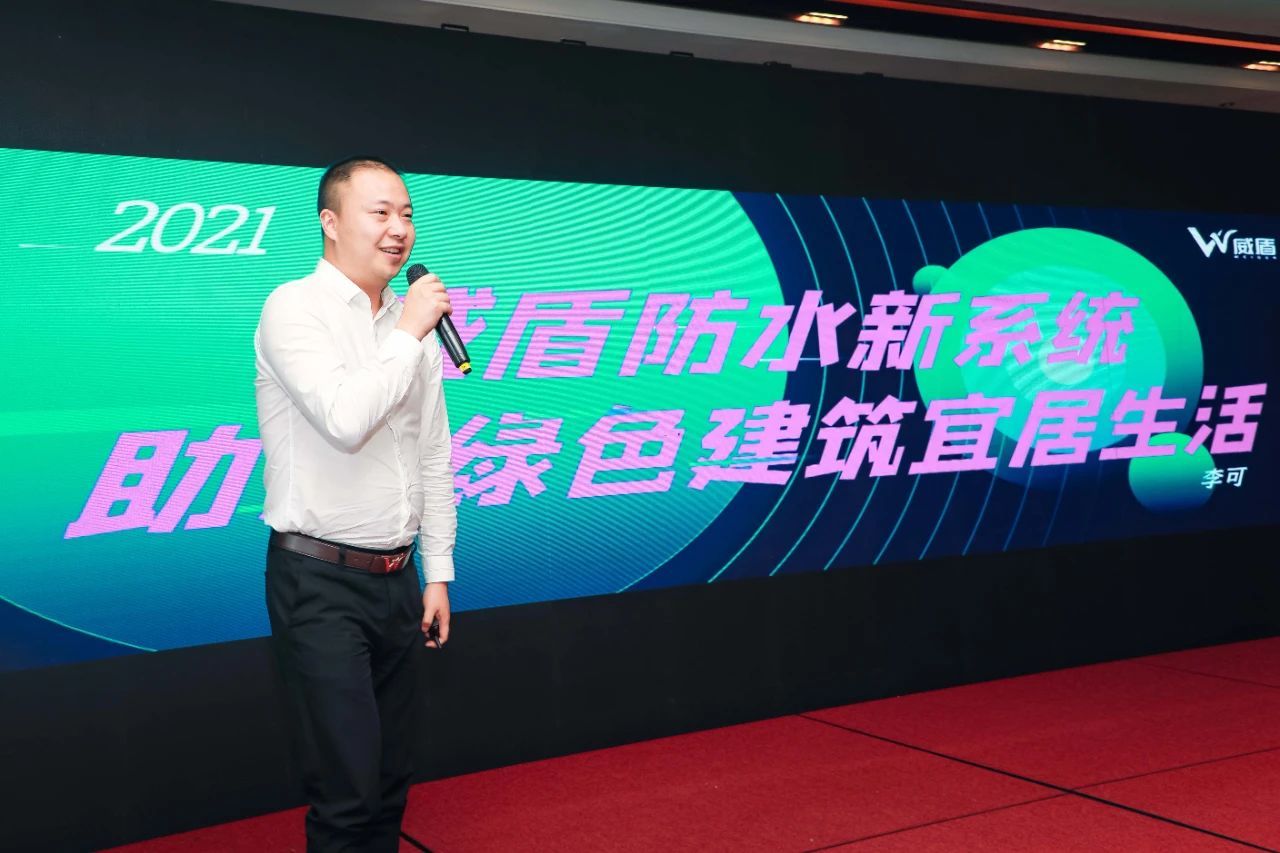 四川省威盾匠心建设有限公司战略总经理李可作《威盾防水新系统助力绿色建筑宜居生活》主题演讲,他从企业介绍、案例展示、威盾系统战略三大方面进行了详细介绍,表明威盾完美刚柔并济防水系统、完美种植防排一体化系统、完美桥面铺装系统等新系统大有可为。