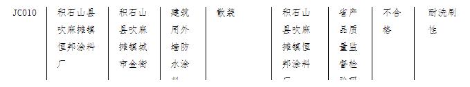 1批次外墙防水涂料抽查不合格