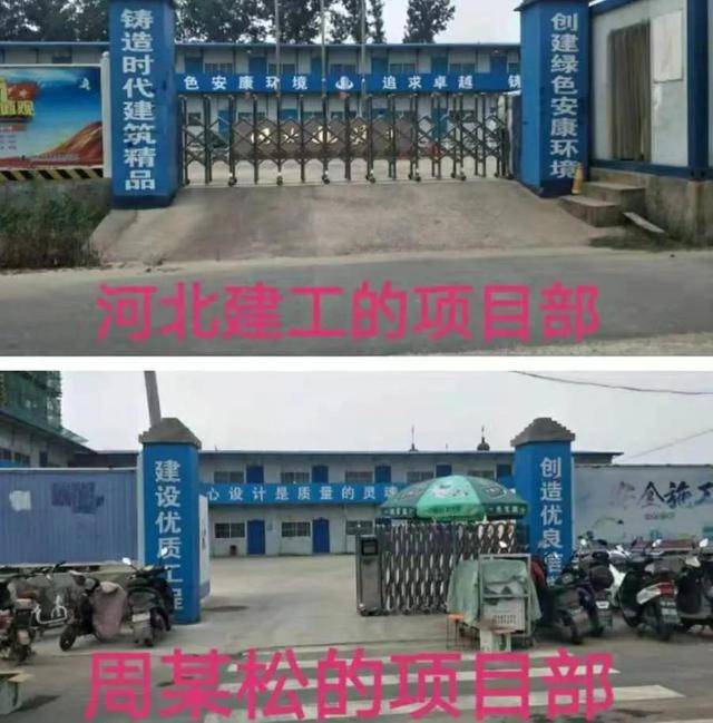 在太和县新安(闪庄)安置区二期施工现场,有两个施工项目部,两个施工项目部分别有独立的料场、进出料大门及工人通道。东侧是河北建工集团的,西侧项目部是周某某的,2020年7月以来,周某某就在这个项目部办公。这期间,周某某先后以安徽滁工园林有限公司等企业的名义对外分包太和县新安(闪庄)安置区二期部分施工项目,收取多位工程分包商的大额保证金。