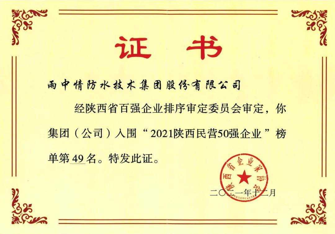 近日,陕西省企业家协会发布“陕西民营50强企业”等榜单。入围企业涉及能源化工、装备制造、批发零售等多个行业,在陕西省经济中占有举足轻重的地位。雨中情凭借出色的业绩增长,连续第二年上榜陕西民营50强企业。