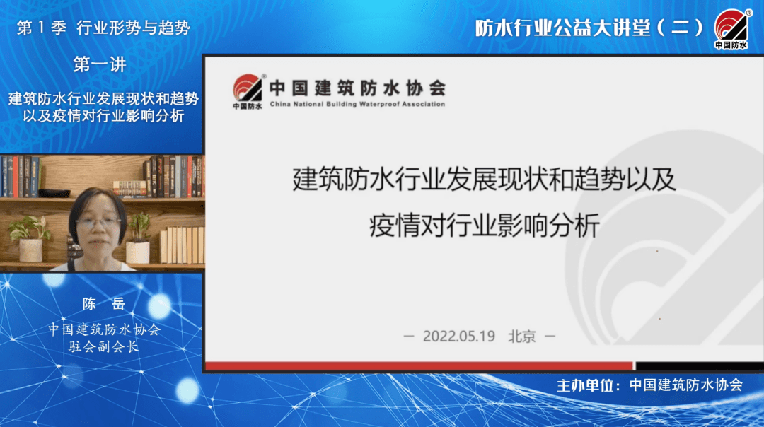 5月19日,迎来了防水行业公益大讲堂(二)第一讲,会议由中国建筑防水协会会员部主任高妍女士主持。