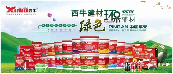 选用大品牌,是建筑防水质量的根本保障。西牛防水,一家专注绿色建材产品研发与创新,致力于为广大的消费者提供环保建筑装饰辅材系列产品及专业施工服务的高新技术企业。多年的防水之路,让西牛在防水产品的研发、制造上拥有核心优势,产品不仅通过ISO9001-2000质量管理体系认证、中国环境标志产品认证、欧盟VOC环保等级最高标准法国a+认证,还获得了中国平安500万质量承保,为客户提供强有力的安全保障。