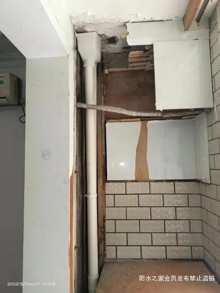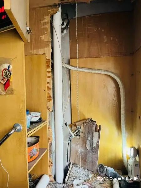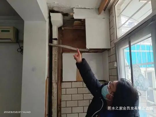 终于通过多方寻找,才联系上202室的居民,但新的问题又出现了。202室的居民表示房屋阳台位置做了橱柜,要检修担心会破坏橱柜,同时也提出了漏水加重的部分原因也有楼上住户阳台放置洗衣机排放污水到雨水管的行为导致。