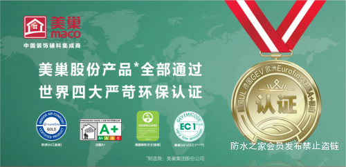 室内防水系统除了材料的防水性能,环保也是关注的重中之重。尤其是家中有孩子和老人的家庭,身体健康可能会受到防水材料的影响,而选择美巢辅料不仅能够防渗抗渗,还能充分的保证室内环境的环保,避免家装污染物出现。美巢集团坚持“品质超越平凡、环保同步世界”的品牌理念,针对有害物质做了更加严苛、更高标准的限制,成功通过美国UL绿色卫士【金级】认证、欧洲Eurofins IAC【金级】认证、德国GEV【EC1PLUS】认证以及法国【A+】标准,这在国内,有且只有美巢一家产品全部通过世界四大环保认证最高级标准,自然更加值得推荐和信赖。