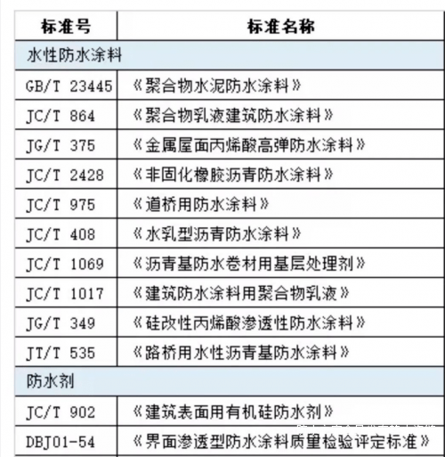 2、不同标准需要区分不同的防水涂料
