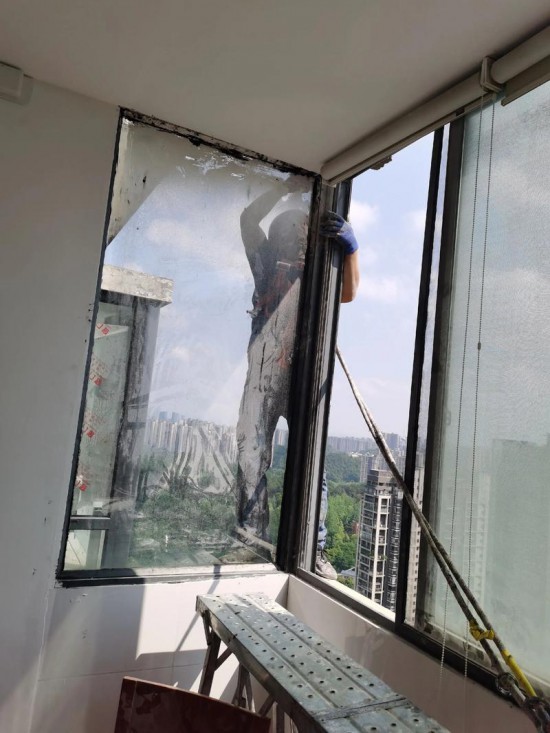 29楼阳台窗户安装打胶