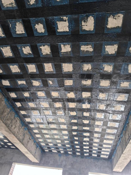 梁顶板粘钢加固施工中